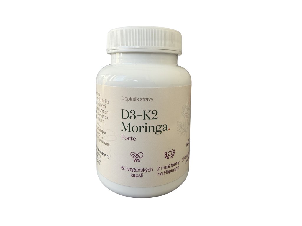 Složení: Moringa oleifera, Vitamin K2 (MK-7), Vitamin D3 (cholekalciferol), kapsle (HPMC).